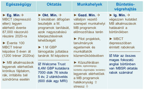 Mindful Nation UK 2015-ben az Egyesült Királyság / Nagy-Britannia törvényhozásának „Mindfulness Összpárti Parlamenti Munkacsoportja” (Mindfulness All-Party Parliamentary Group - MAAPG) szakértõk meghívásával zajló parlamenti meghallgatások valamint parlamenti képviselõk és szakértõk részvételével zajló 1 évig tartó háttérmunka összefoglalásaképpen egy közel 50 oldalas jelentést (Mindful Nation UK Report) készített a brit kormány és a Parlament számára, melyben konkrét javaslatokat fogalmaztak meg a mindfulness módszerek társadalomban történõ elterjesztésére vonatkozóan. A jelentés 4 területet jelöl meg, ahol a mindfulness módszerek elterjesztése kívánatos lenne, mely az egész társadalom számára pozitív eredményeket hozna: